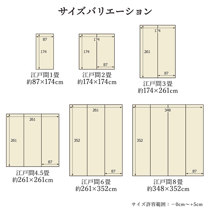 | 87×174cm | 174×174cm | 174×261cm | 261×261cm |