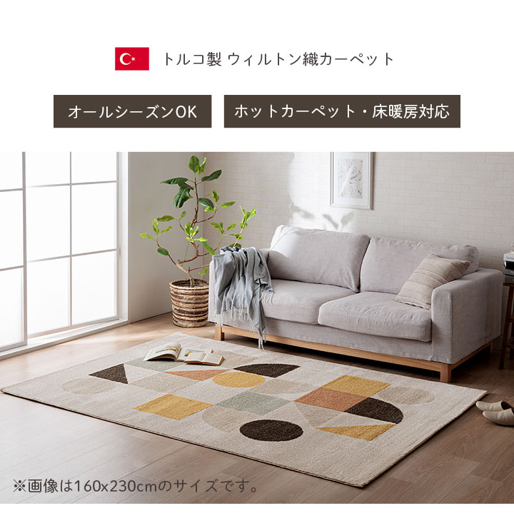 ウィルトンカーペット カーペット デザインラグ ウィルトンカーペット 長方形 アイボリー 北欧柄 ナチュラル 約160×230cm(代引不可)