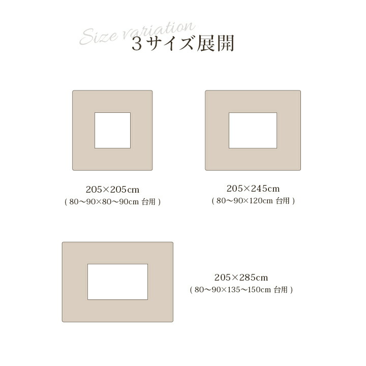 205×205cm205×245cm205×285cm