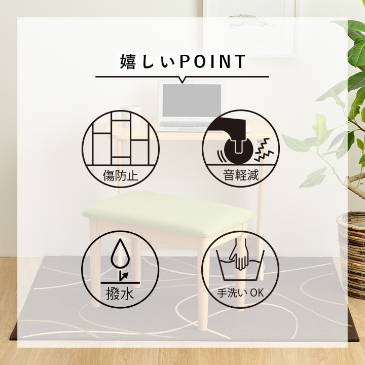 裏面は不織布だから学習机や椅子の移動も安心。床の傷防止に必要なアイテムです。