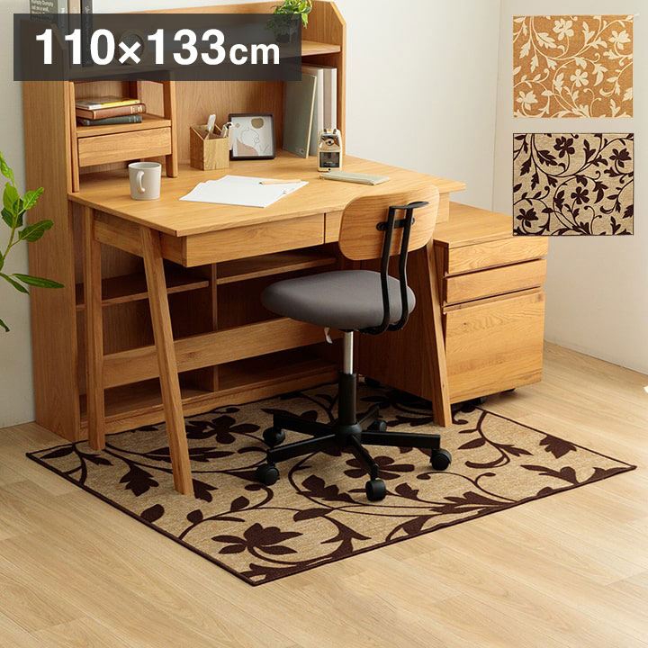 ボタニカルテイストのおしゃれなカーペット。お子様用のデスクカーペットはもちろん、大人用の書斎やテレワークデスクにもおすすめです。