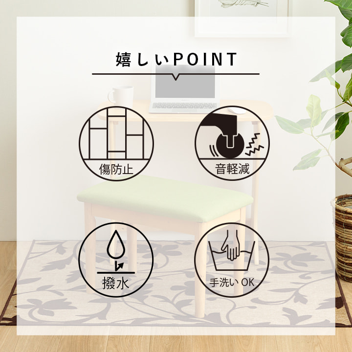 表地に撥水加工を施しているので、水分をこぼしてもサッと拭けてお手入れ簡単。