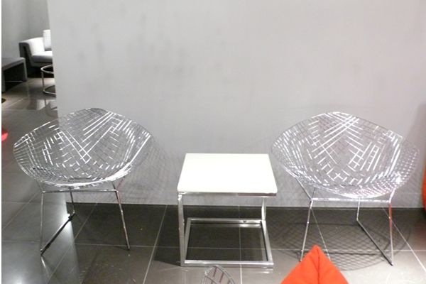 | 説明 | 光が降り注ぐとワイヤーの影が美しく、まさに光と影の彫刻です。背もたれが大きくアーム部分も広いので男性でもゆったりと座れます。 |