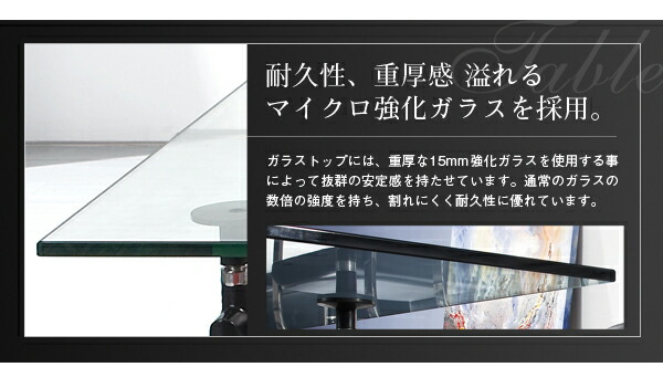 | 仕様 | 【天板】15mm強化ガラス 【脚部】メタルフレーム つや消し ブラック パウダーコーティング仕上げ |