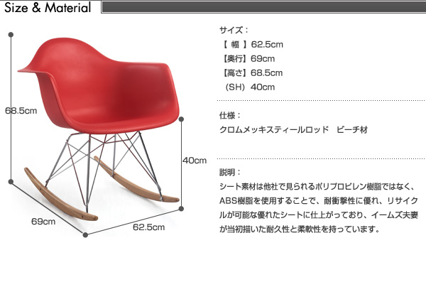| 説明 | シート素材は他社で見られるポリプロピレン樹脂ではなく、ABS樹脂を使用することで、耐衝撃性に優れ、リサイクルが可能な優れたシートに仕上がっており、イームズ夫妻が当初描いた耐久性と柔軟性を持っています。 ※沖縄、離島は別途送料が掛かります。 |
