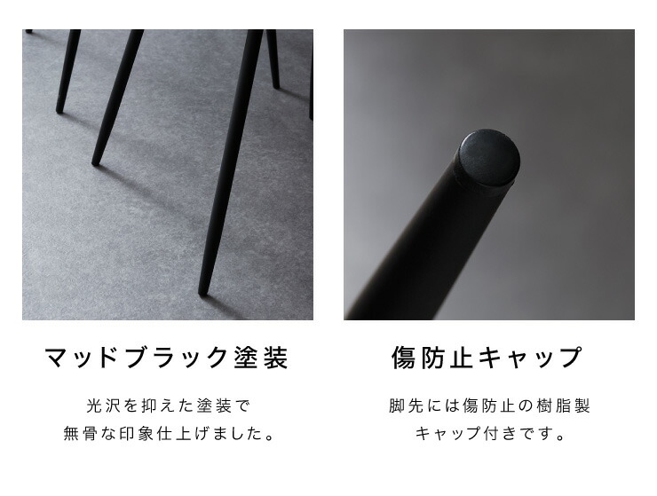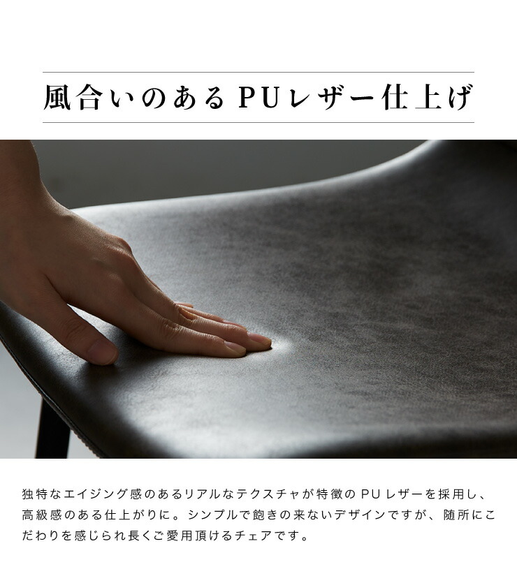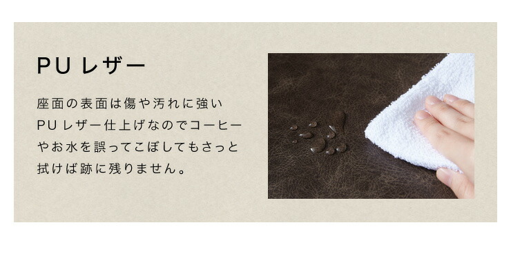 ・座面の表面は傷や汚れに強いPUレザー仕上げなのでコーヒーやお水を誤ってこぼしてもさっと拭けば跡に残りません。