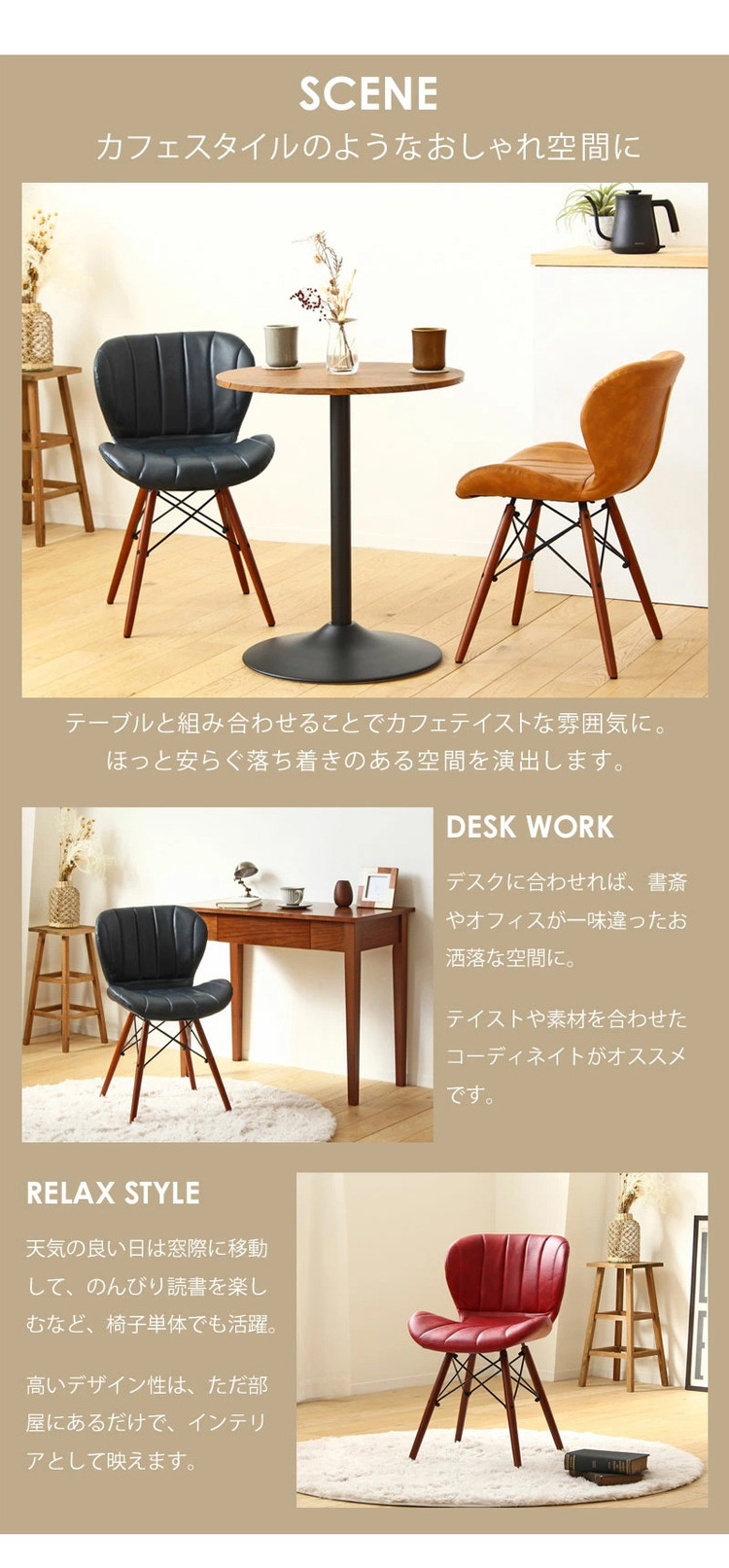 ダイニングチェア おしゃれ チェア レザー 合皮 完成品 デスクチェア デザインチェア オフィスチェア ダイニング リビング 椅子 イス テレワーク 木製 無垢材 天然木 新生活 レッド ネイビー イエロー(代引不可)