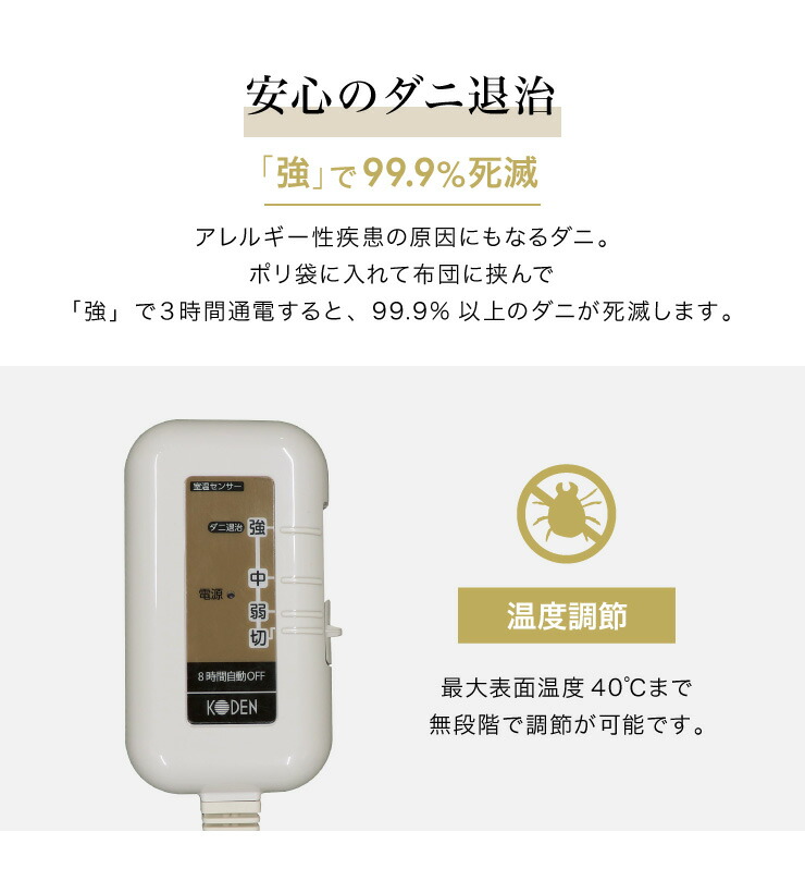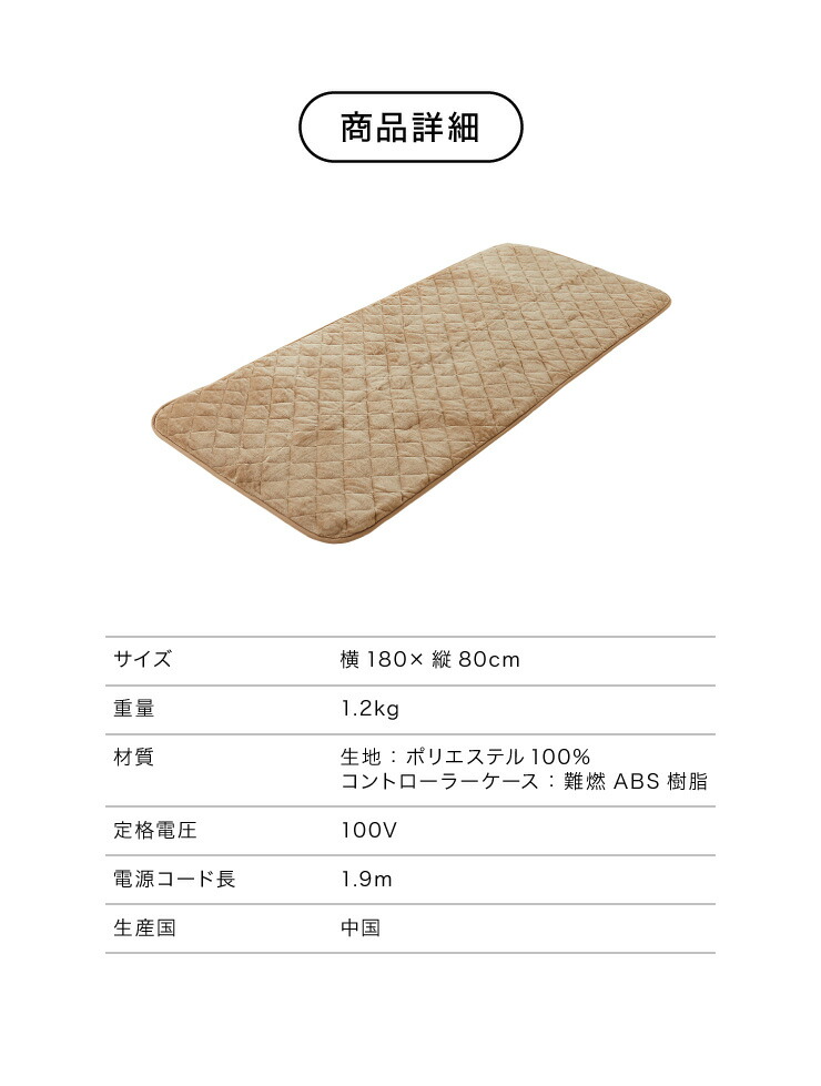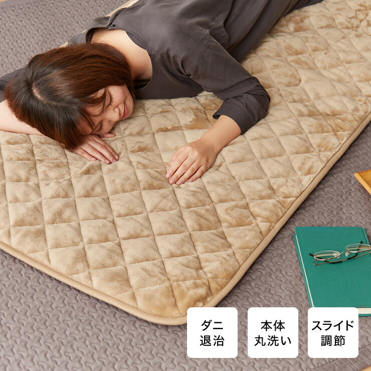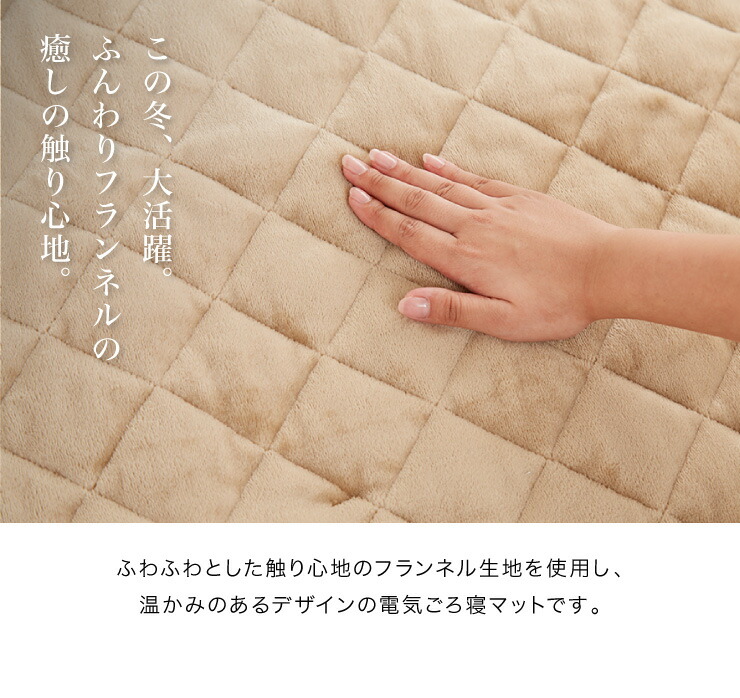 フランネル 電気ごろ寝マット 180×80cm ダニ除け加工 本体丸洗い可能 ダニ退治 スライド調節 室温センサー ごろ寝マット