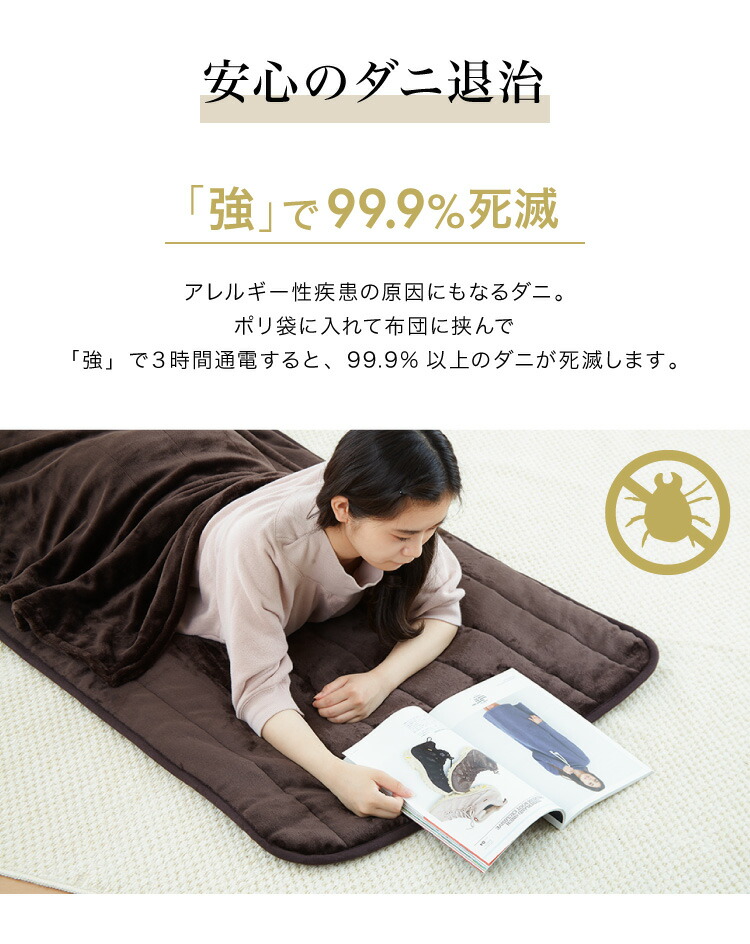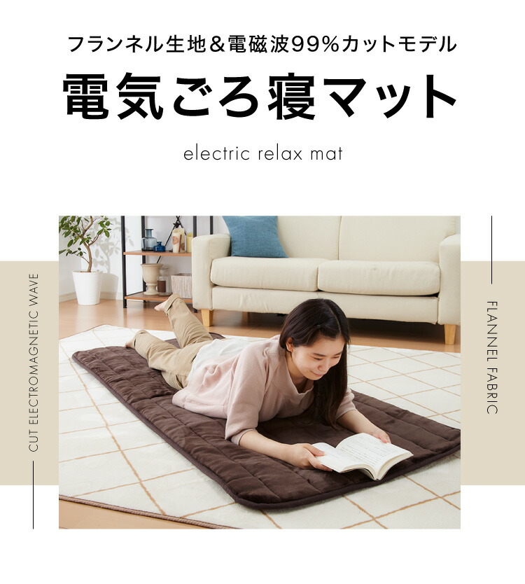 電磁波カットフランネル 電気ごろ寝マット 180×80cm 本体丸洗い可能 ダニ退治 スライド調節 室温センサー ごろ寝 マット