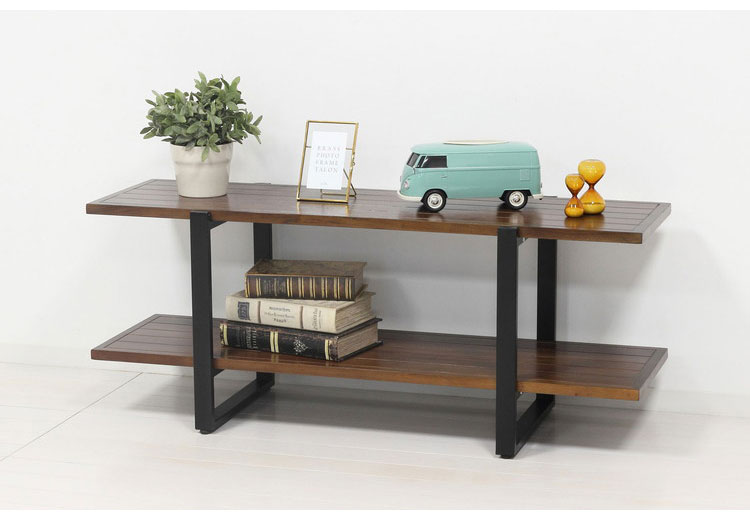 マホガニー天然木 テレビ台 幅105 アンティーク調 ローボード スチール脚 テレビボード TV台 TVボード ラック 棚 おしゃれ(代引不可)