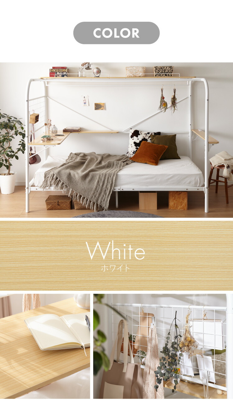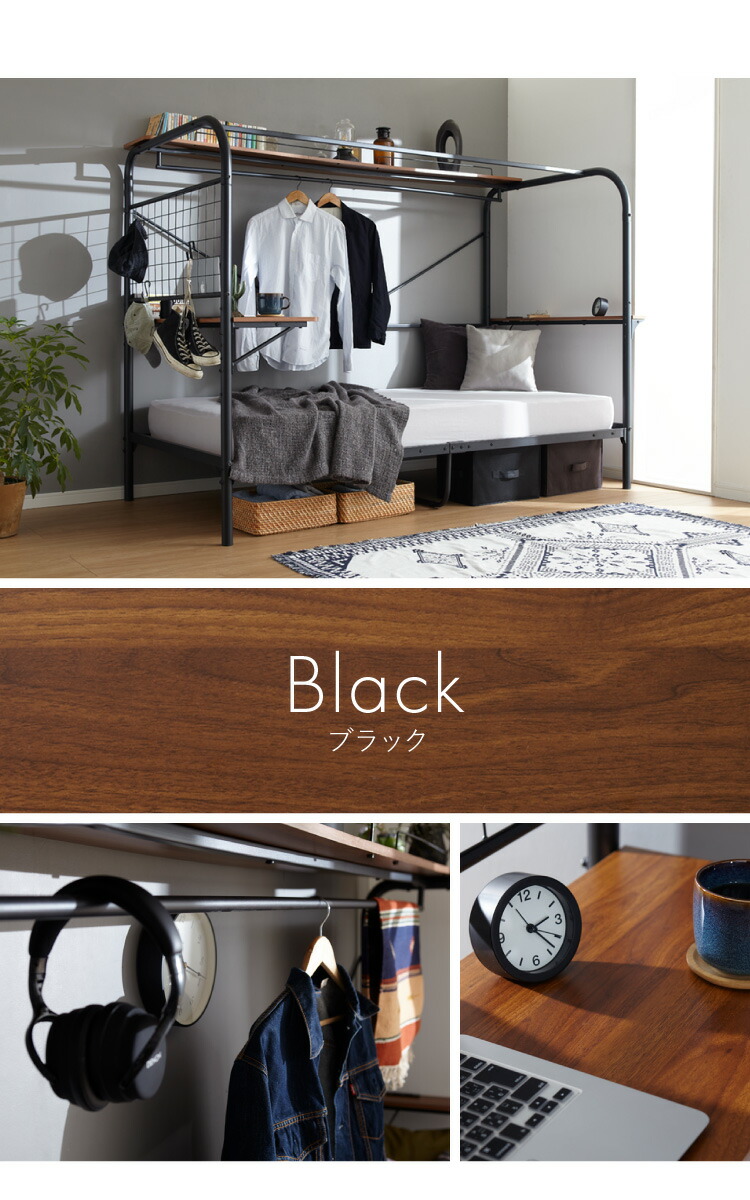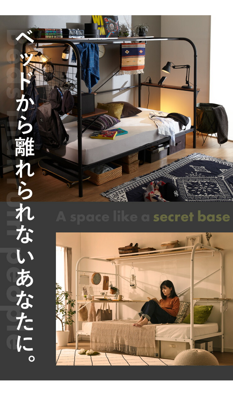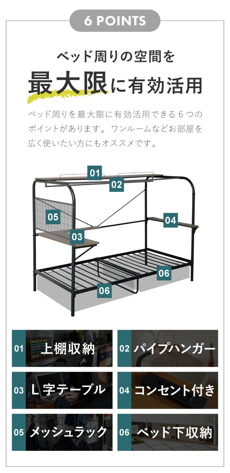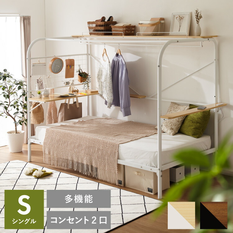 多機能スチールベッド シングル 棚付き コンセント 宮棚 テーブル付き ハンガーラック パイプベッド 1人暮らし 一人暮らし おしゃれ(代引不可)