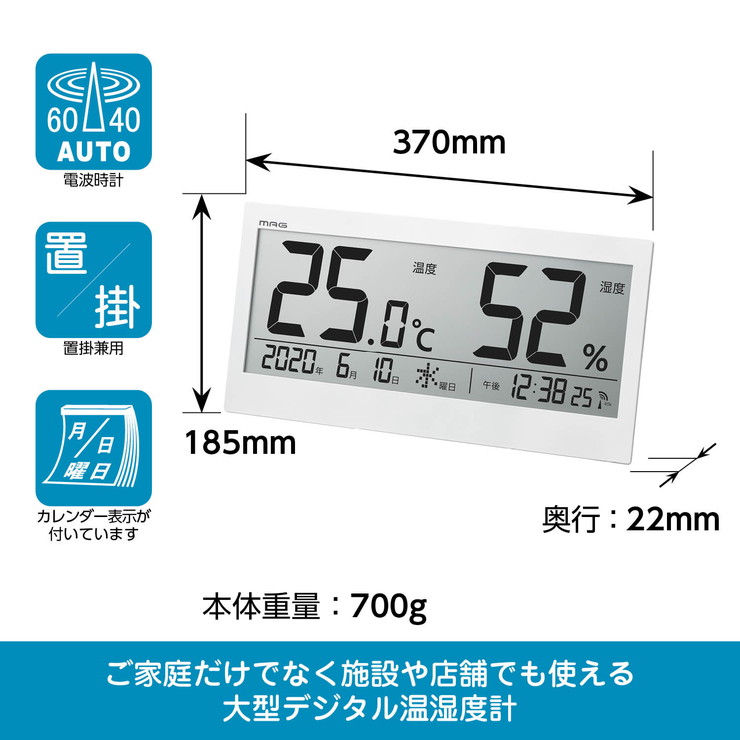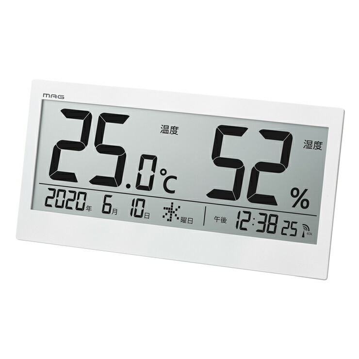 ノア精密 MAG マグ デジタル温度湿度計 ビッグメーター TH-107WH-Z 電波時計 デジタル 置き 掛け カレンダー 温度 湿度 曜日