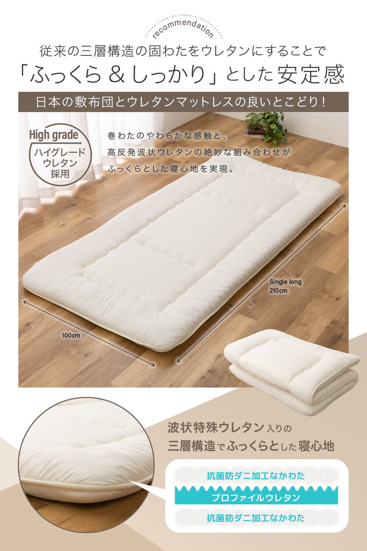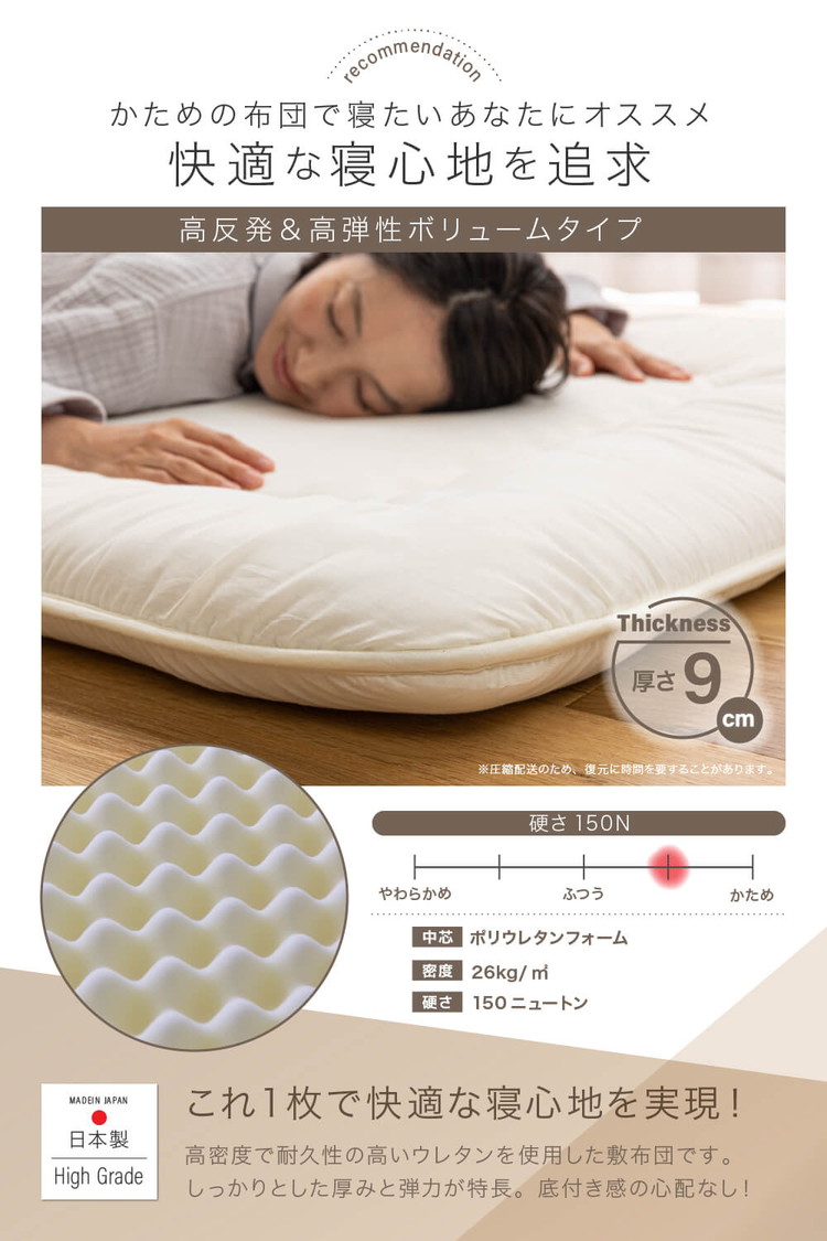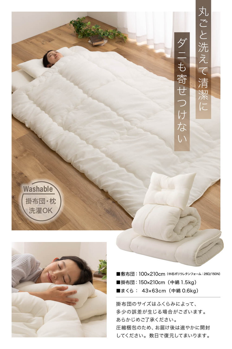 ・敷布団は洗えません。カバーを掛けご使用することをおすすめ致します。