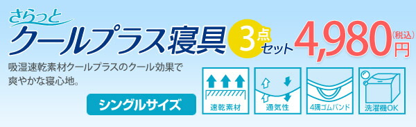 クールプラス 吸湿速乾 Cool plus さらっとクールプラス寝具3点セット【シングルサイズ】 2011年版 coolpluz 敷きパッド 枕パッド