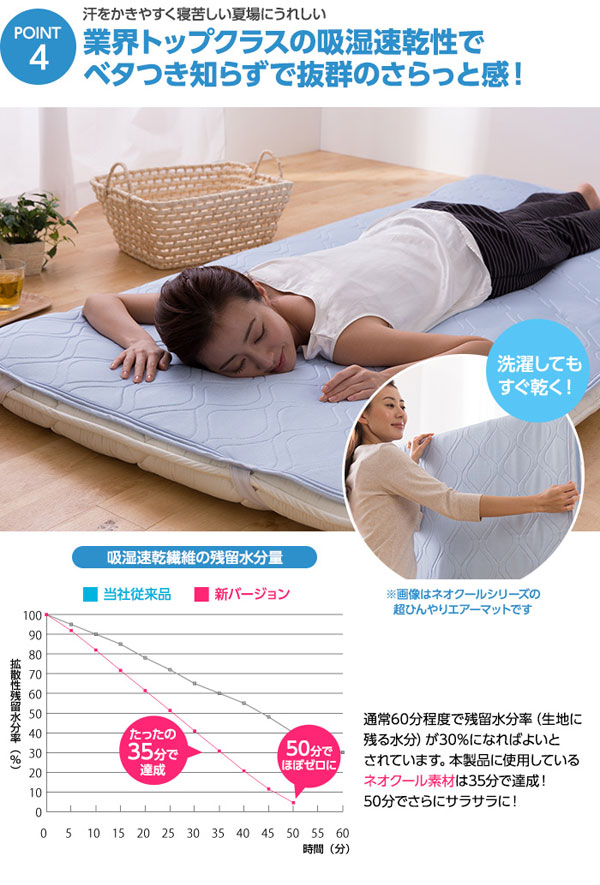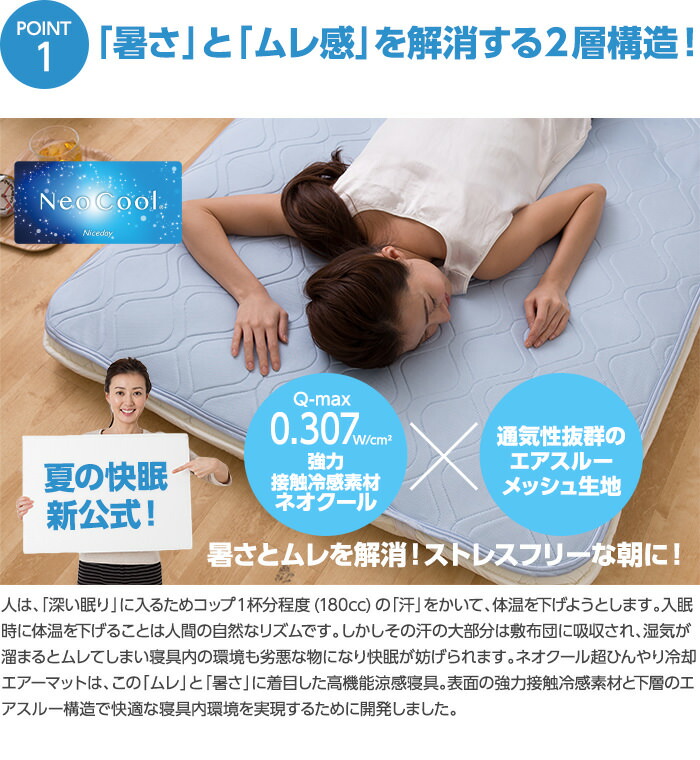 ひんやり&通気性の2層構造で夏の蒸し暑さを解消!