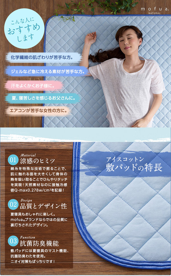 | mofua natural 天然素材綿100% ICE COTTON 涼感アイスコットン 敷パッド 価格表 | ||