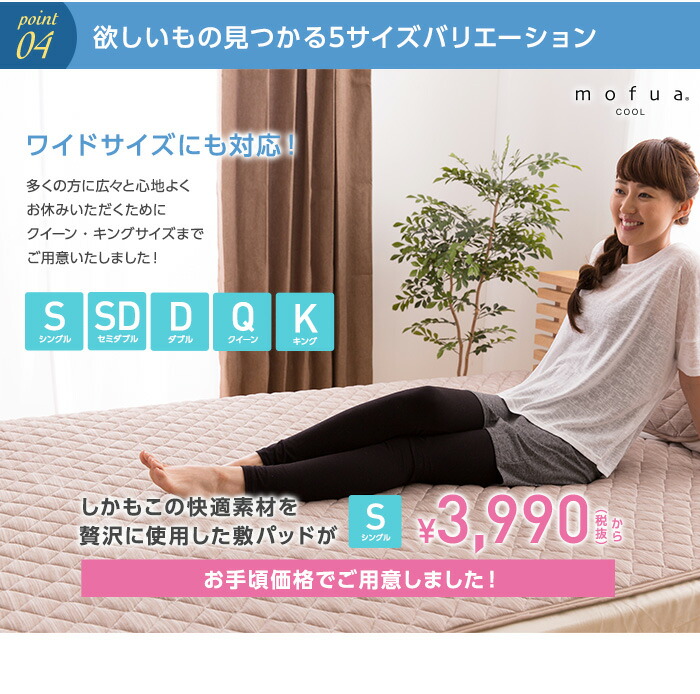 mofua cool 接触冷感素材・アウトラストクール敷パッド(抗菌防臭・防ダニわた使用) 価格表