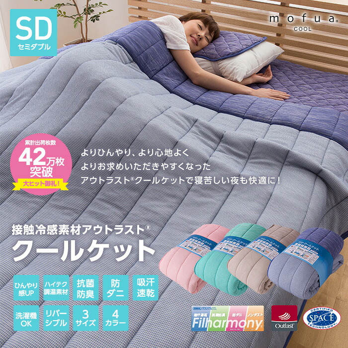mofua cool 接触冷感素材 アウトラスト クールケット 抗菌防臭 防ダニわた使用 (セミダブル)(代引不可)