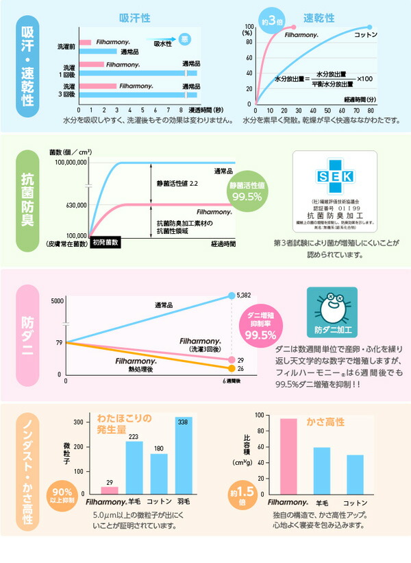 中綿:ポリエステル100%(アウトラスト(R)わた50%、東洋紡フィルハーモニィ(R)わた30%、中空わた20%使用)