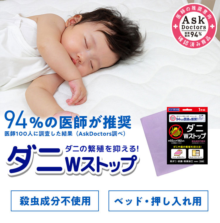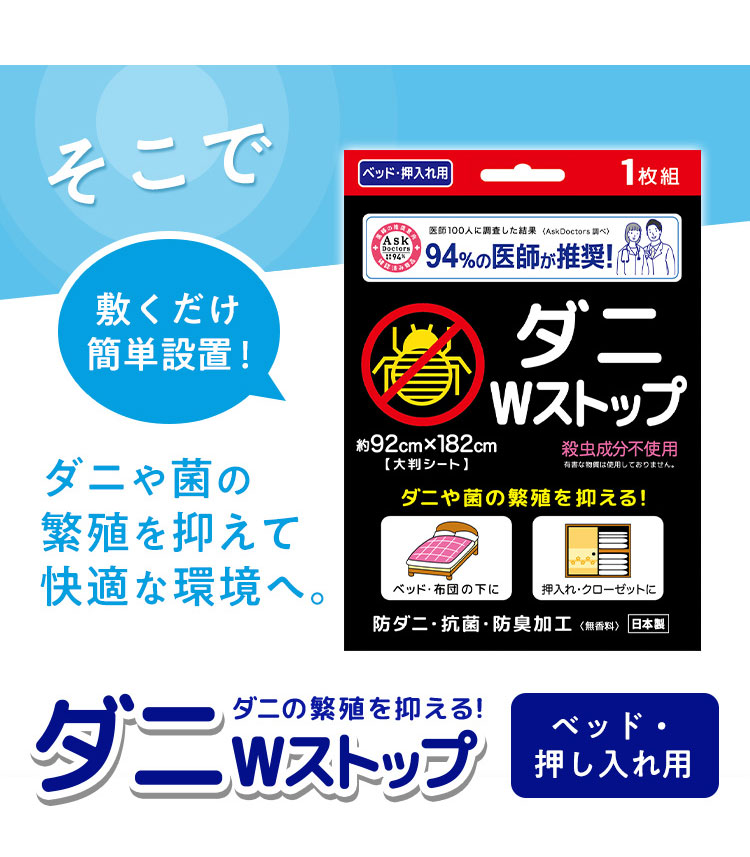 防ダニ 大判シート 約92×182cm 抗菌 防臭 お子様 安心 殺虫成分不使用 ハウスダスト アレルギー アトピー対策 無香料 虫よけ ベッドパット 枕 介護 シート 寝具 マットレス 国産【メール便配送】