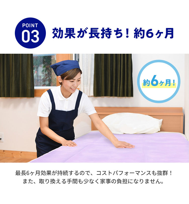 敷布団の下やマットレスの上、または押入れに敷いて下さい。ダブルベッドなど広い範囲でお使いになる場合は本品を複数枚ご使用下さい。