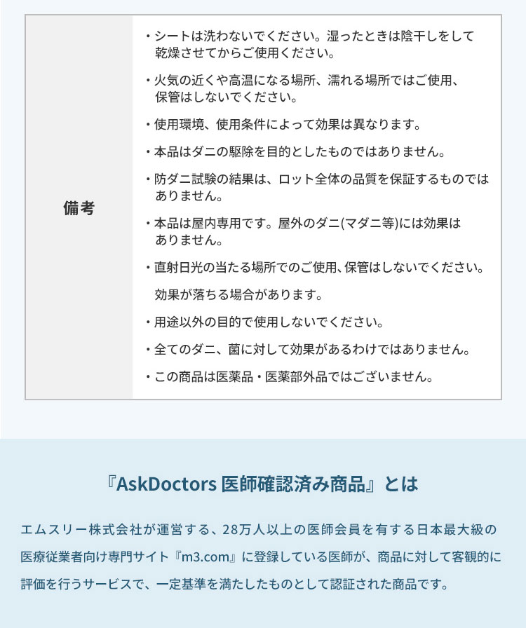 ・防ダニ試験の結果は、ロット全体の品質を保証するものではありません。