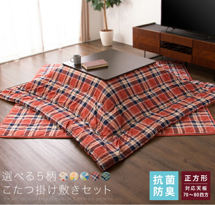 選べる5柄 こたつ布団 掛敷セット 正方形 185×185cm 抗菌 防臭 省スペース チェック柄 セット かわいい おしゃれ 一人暮らし こたつ 掛け布団 こたつ掛布団 こたつ掛け布団 敷き布団 敷布団 テーブル