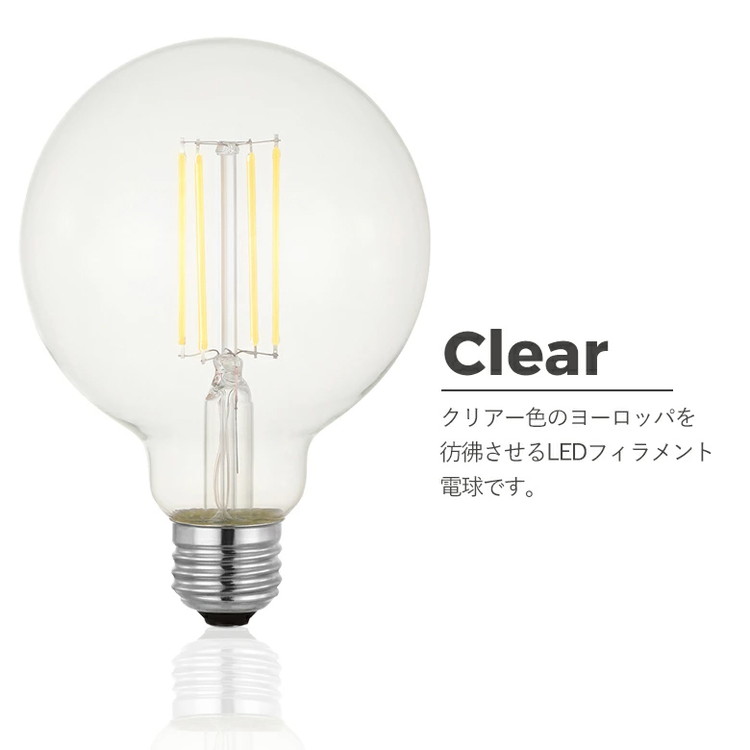 クリアー色のヨーロッパを彷彿させるLEDフィラメント電球です。