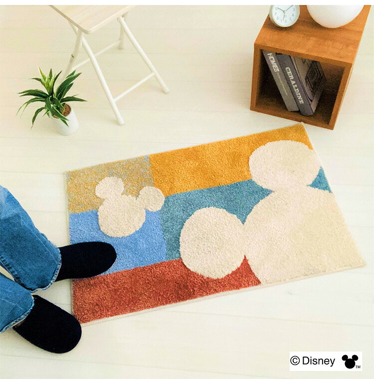 ディズニー 玄関マット 85×55cm ミッキー モノトーン マルチカラー 玄関 室内 ラグマット インテリアマット おしゃれ かわいい 可愛い キャラクター 北欧 シンプル(代引不可)