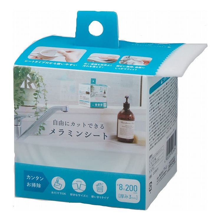好きなサイズにカットして、さっと使えるメラミンシート。水にぬらして軽くこするだけで汚れが落とせます。衛生的な使いきりタイプ。
