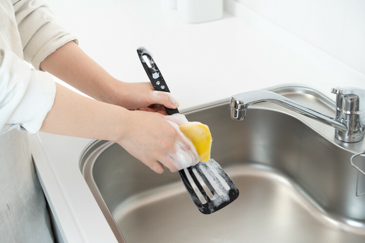 柄に穴が開いているのでフックなどに掛けて収納できます。食器洗い乾燥機でお使いいただけます。日本国内で製造管理された製品です。