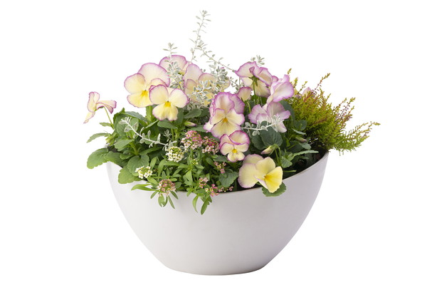 波形のヘリ形状で、植物と一体感を演出する鉢。植え込み口が広いので、寄せ植えに適しています。