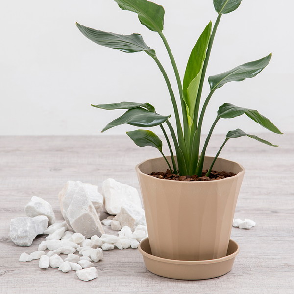 リビング用の中・大型観葉植物の栽培に適しています。しっかりした重量があり、倒れにくい形状なので安定感があります。シンプルなフォルムなので、植える植物を選びません。
