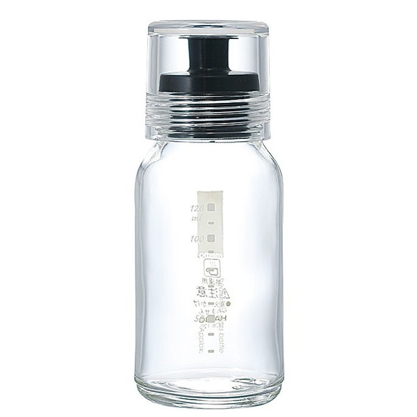 色移り・ニオイ移りしにくいガラス製。ネジ口の密封ボトルで、振り混ぜて撹拌しても中身が漏れない。