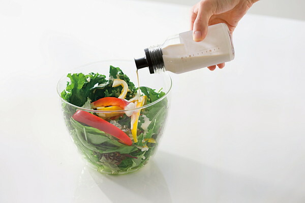 振って・作って・注いで・保存ができるガラス製のドレッシングボトル。