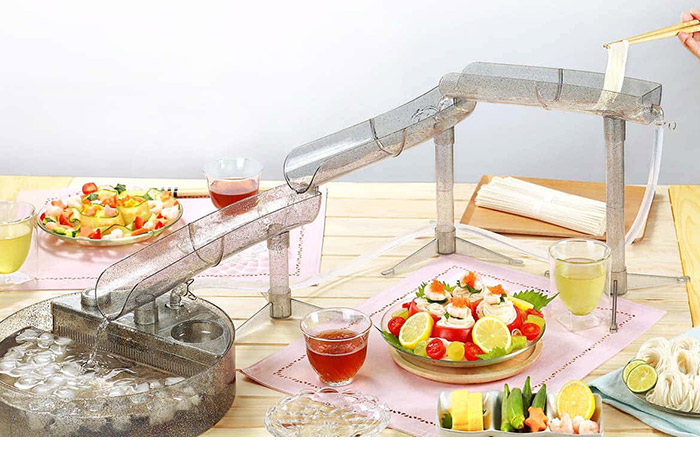◆元祖流しそうめんのように上から流れるタイプの卓上流しそうめん。