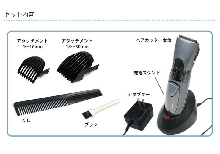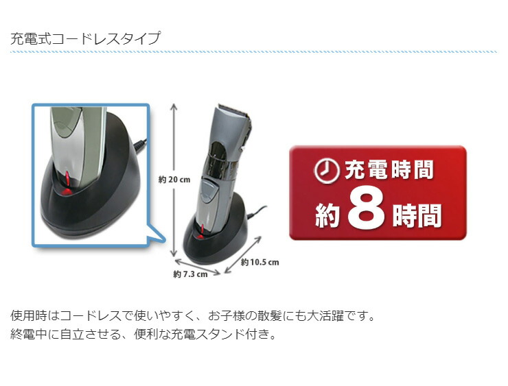 お子様の散髪にも大活躍です。充電中に自立させる、便利な充電スタンド付き