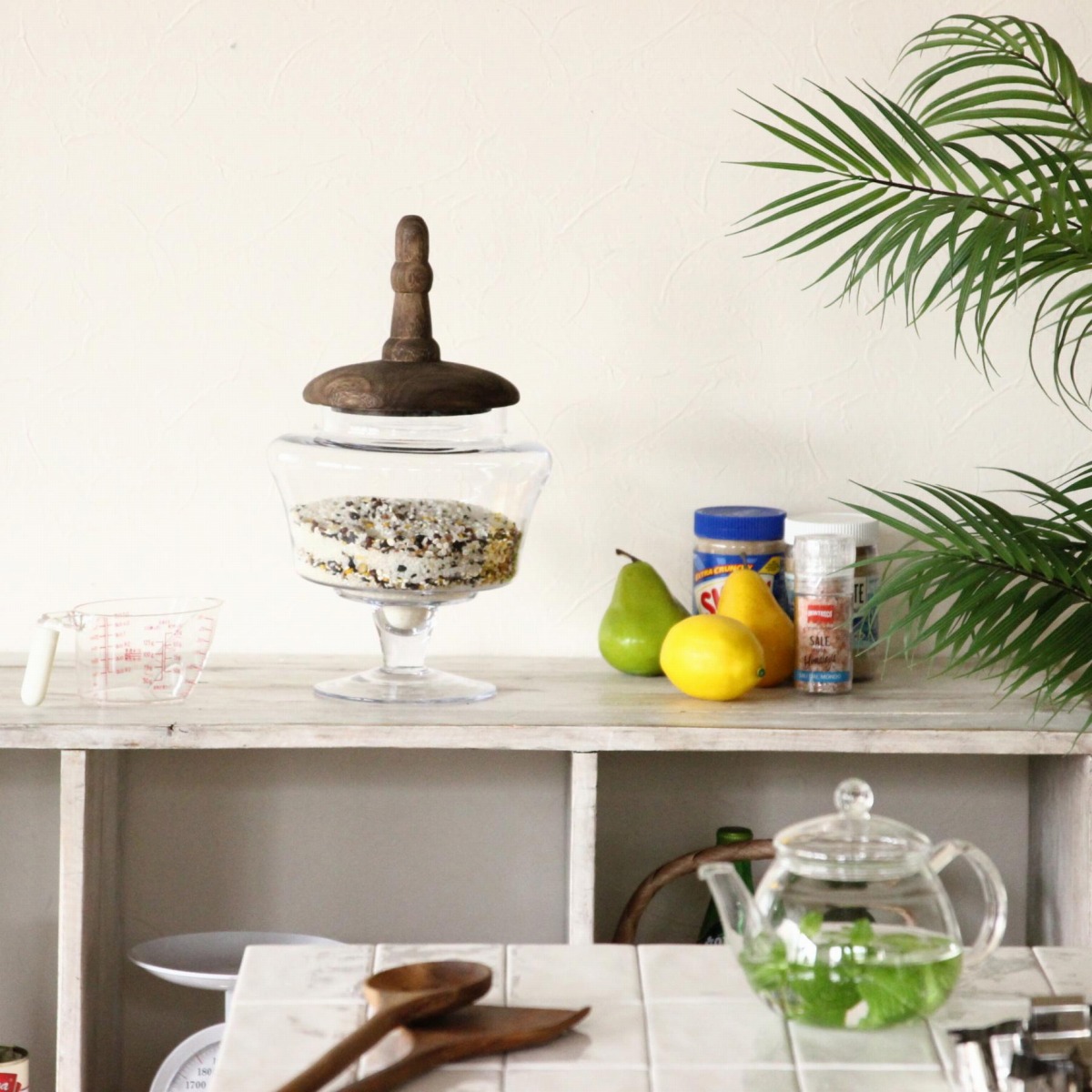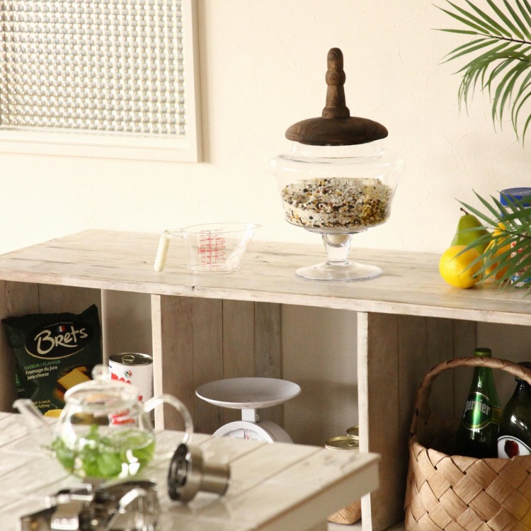 ■アンティークテイストでもナチュラルテイストでも似合うデザイン性の高いガラスジャーです。