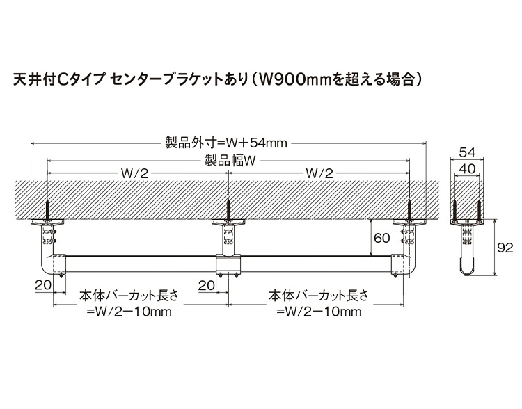 ※構造用合板(厚さ15mm未満)、野縁(木部:水平方向)、軽量鉄骨、石膏ボードのみなどには取付不可になります。