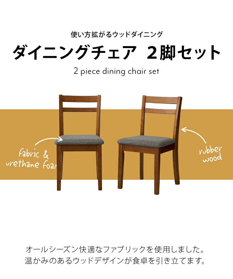 ダイニングチェア 2脚セット 天然木 ファブリック 木製 ダイニング 北欧 食卓 おしゃれ 新生活 チェア 椅子 リビングチェア チェアセット イス チェアー ダイニングチェアー いす