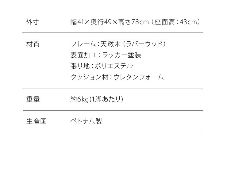 外寸:幅41×奥行49×高さ78cm(座面高:43cm)