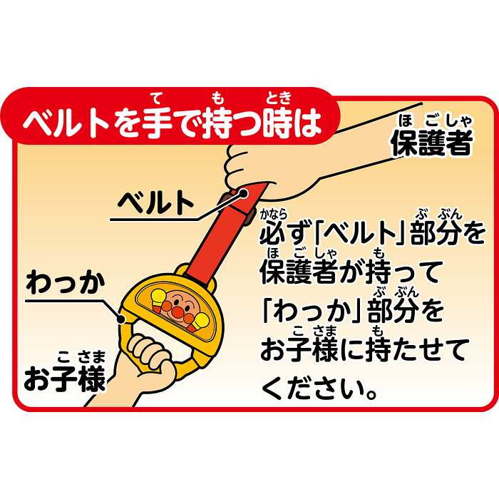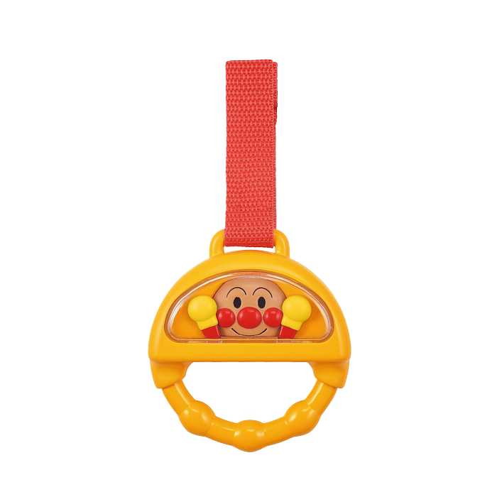 楽しいお出かけをサポートしてくれる、おでかけおうえんつりわっか!持ち手を引くとアンパンマンが手をフリフリするよ!