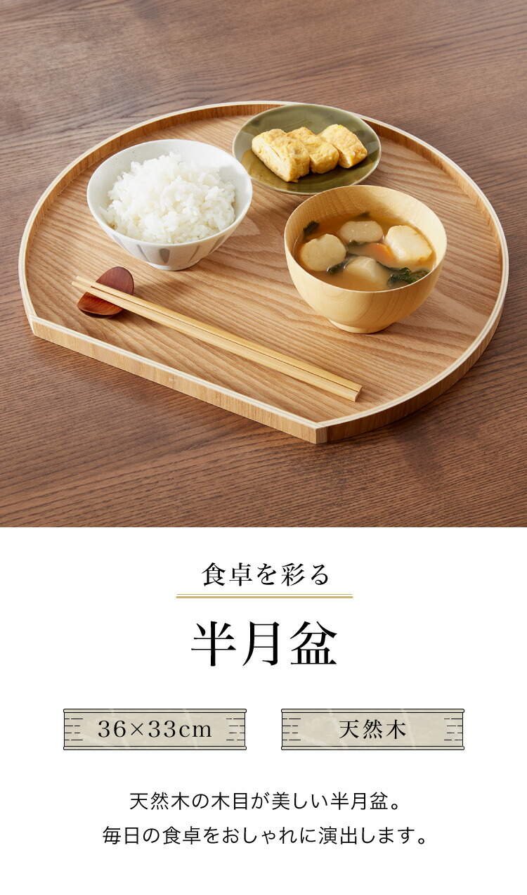 半月盆 36cm お盆 天然木 半月膳 お盆 トレー ナチュラル 食卓 プレイスマット ランチョンマット ランチ 和食 洋食 和室 洋室 洋風 和風 正月 来客用 おもてなし シンプル(代引不可)