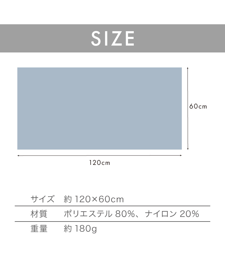 フェイスタオル 80×30cm | ヘアドライタオル 100×40cm | バスタオル 120×60cm |