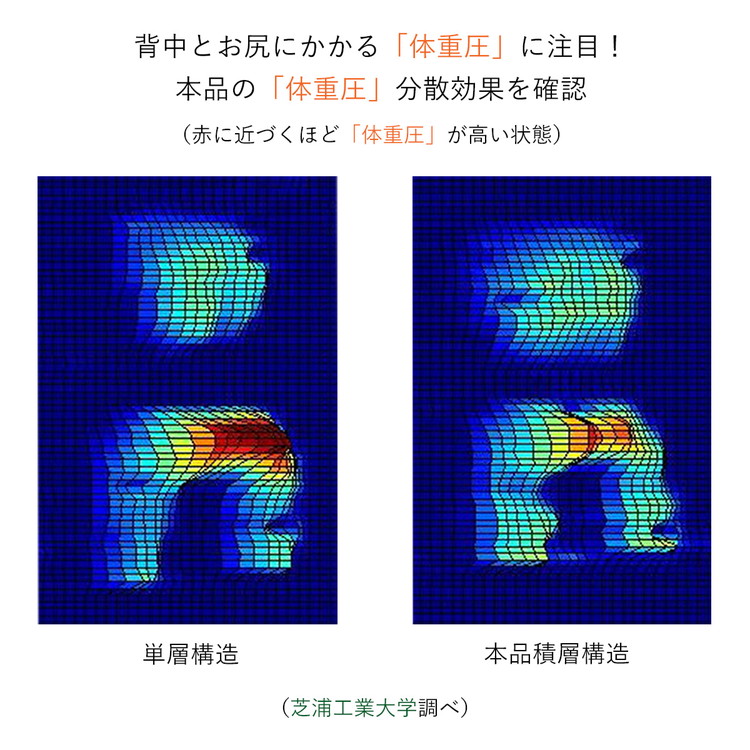 座面はお尻のラインに合わせた曲面で支え、「体重圧」を分散する構造。