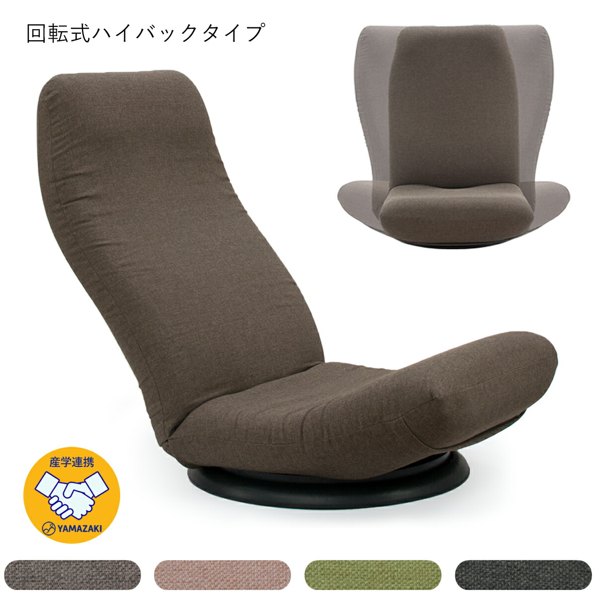 【日本製 産学連携 ハイバック 回転 座椅子】イス 椅子 チェア フロアチェア パーソナルチェア リクライニング(代引不可)