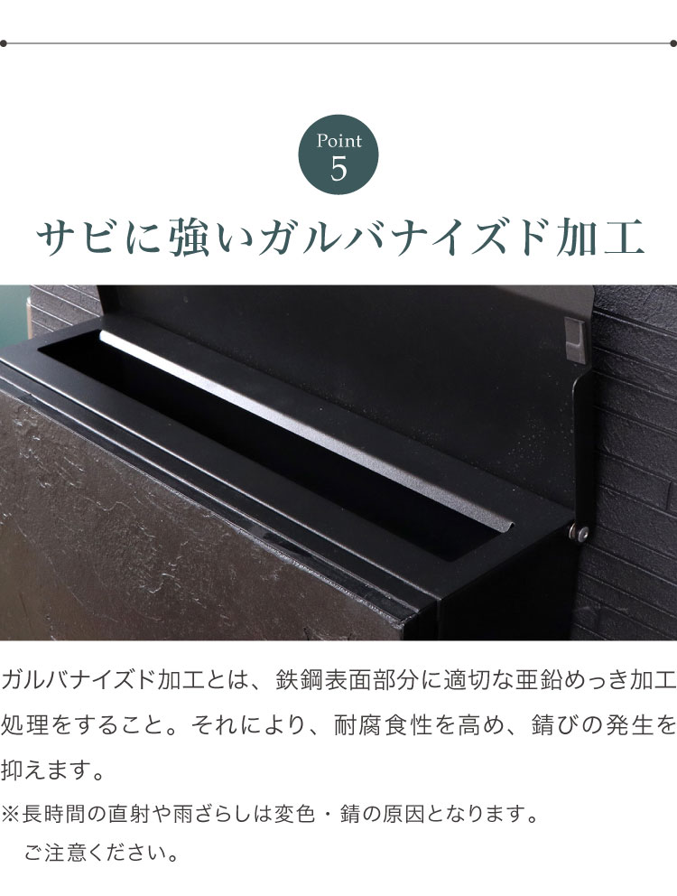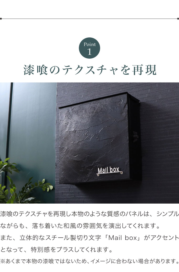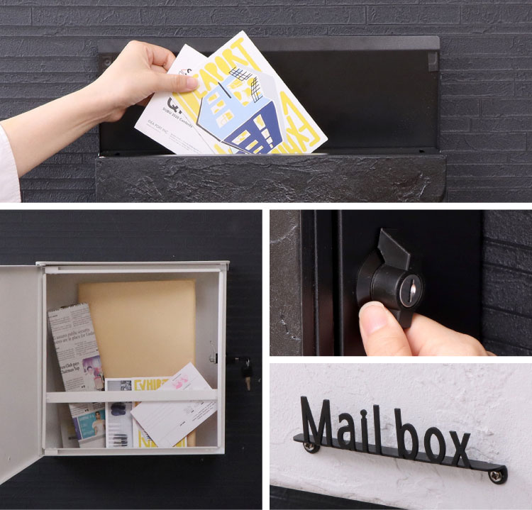 「Mail box」のプレートがスチールの切り文字になっており立体感があります。