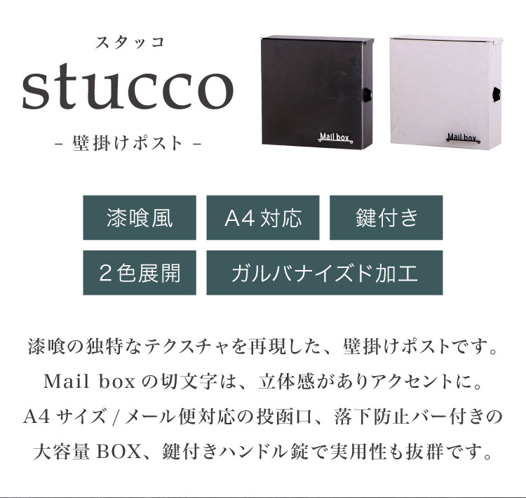 壁掛けポスト 漆喰風 おしゃれ 和風 郵便ポスト A4 北欧 ハンドル錠 鍵付き 玄関 施錠 防犯 安全 郵便受け メールボックス 新聞 ウォールポスト モダン 門柱 大容量 stucco スタッコ(代引不可)