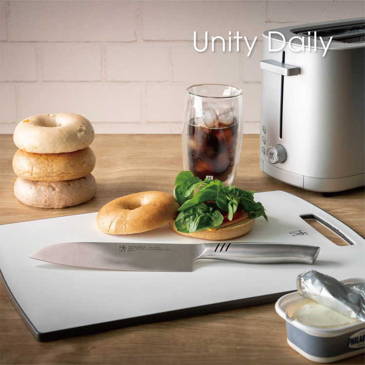 ユニティデイリーは継ぎ目なく流れるようなデザインが特徴のオールステンレス製の清潔仕様。隙間がないため汚れがたまらず、錆に強く鋭い切れ味は長持ちします。曲面からなるモナカハンドルは、どのように握っても手のひらにフィットし、握った際の安定感により疲労を軽減します。ナイフブロックはキッチンバサミの収納スペースもあり、出し入れするだけで包丁が砥げるセルフシャープニング機能が付いております。天然木の色目によりキッチンがお洒落に演出でき、ブロックの研ぎ機能により、切れ味・清潔さが長続きする包丁セットです。