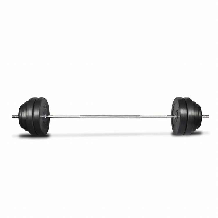 ■パーソナルトレーニング施設やホームジムに最適なストレートダンベルバーです。このバーベルコンプリートセットは耐久性があり、安全です。 ストレートバーの長さは165cmで、同じシリーズのダンベルセットと組み合わせて使用することができます。簡単に組み合わせて使える8種類のウェイト(4 x 10kg、2 x 5 kg、2 x 2 kg)が付属しています。 星型のねじ止めがウェイトを一カ所にしっかりと固定します。エクササイズの最中に最適なグリップを保証する特別構造のバーグリップハンドルが特徴。ウェイトはトレーニング中にノイズを軽減するプラスチックに入れられています。
